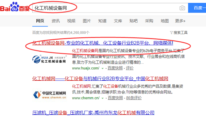 化工機械設備網與Baidu、360、sogo、google、soso等搜索引擎強強聯合,不僅為化工機械設備企業提供行業門戶平臺宣傳推廣,同時也為化工機械設備企業爭取搜索引擎增值服務,提供Baidu、360、sogo、Google、soso等優化推廣服務!多個搜索頁面,沖擊采購者眼球!